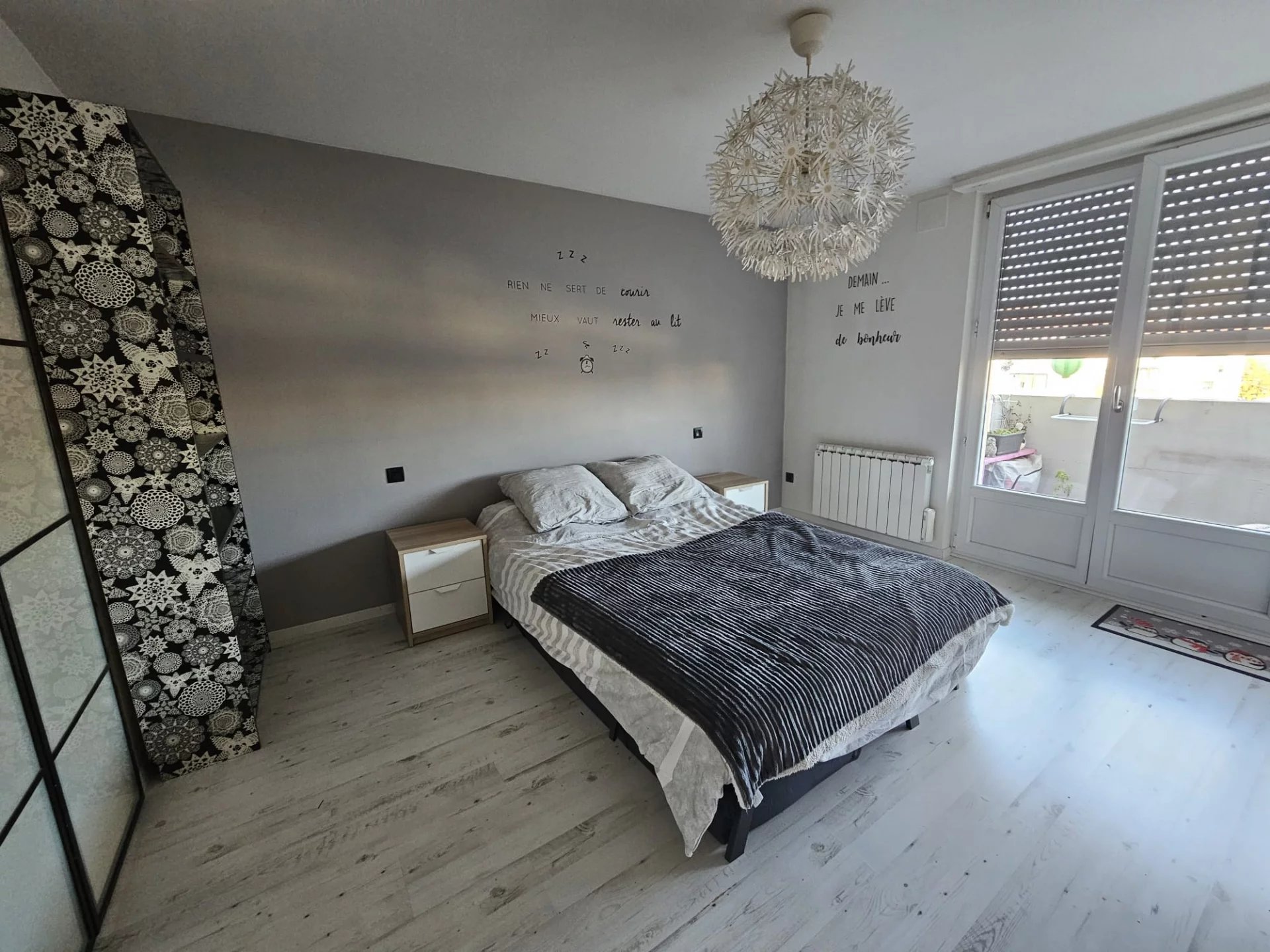 2 chambres et 1 grand dressing, une salle de bain avec douche et baignoire balnéo, 1 balcon et 1 loggia.