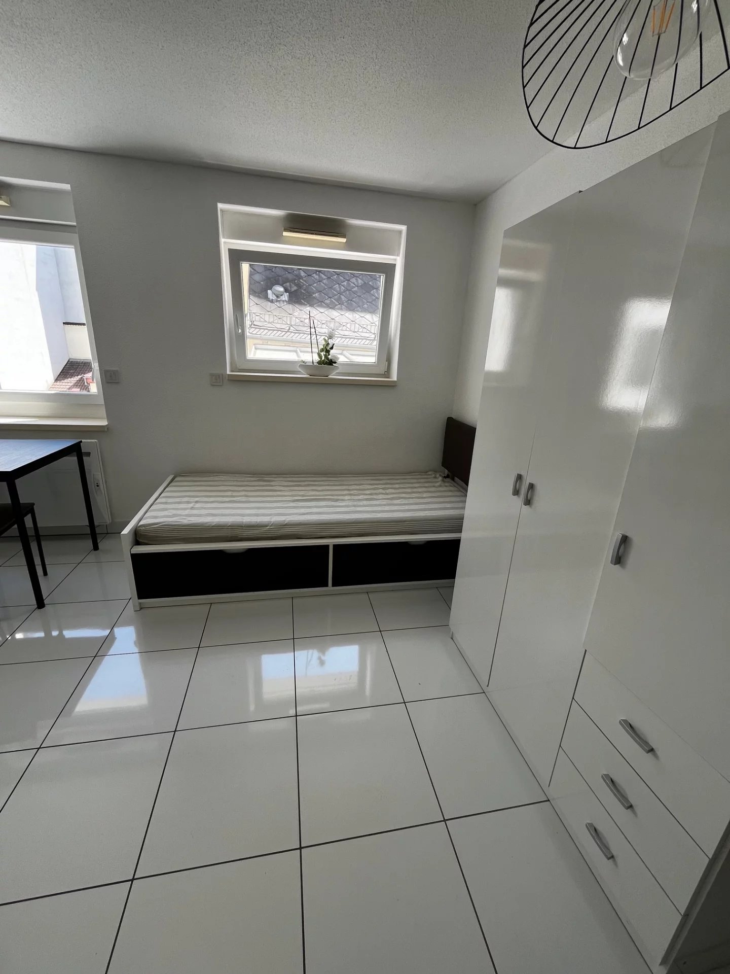 Des équipements sont mis à disposition pour votre confort (lit simple, table, chaises, armoire avec penderie et meuble de rangement)